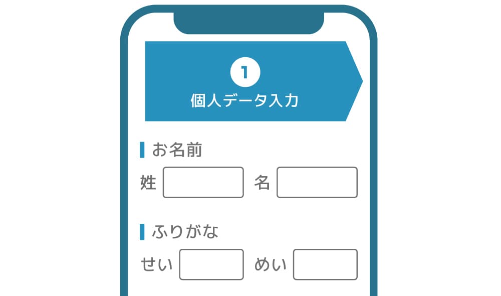 会員登録フォームにお名前、性別、生年月日、住所などの基本情報を入力してください。
